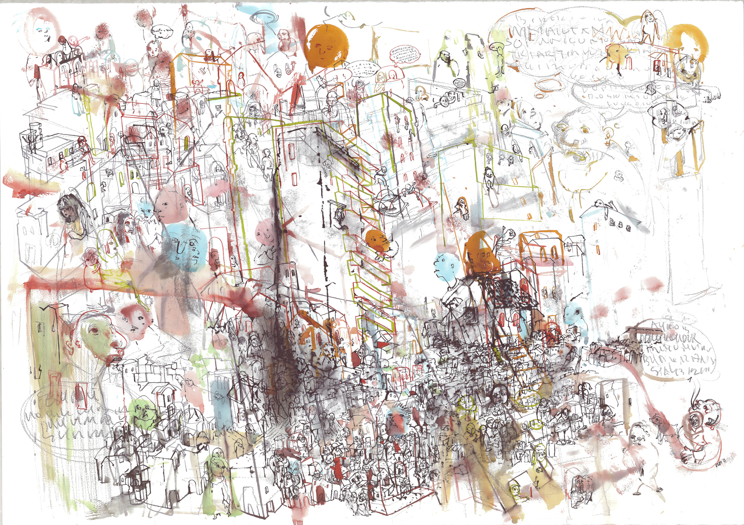 Ceren Oykut, Suriçi Serisi - Su, Kağıt üzerine mürekkep, suluboya ve kurşun kalem, 70 x 100 cm, 2013