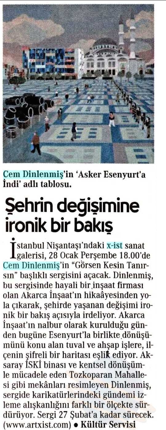 Cem Dinlenmiş, 1985 İstanbul doğumlu, Marmara Üniversitesi, Güzel Sanatlar Fakültesi, Grafik Bölümü mezunudur. 2005'te Haftalık Penguen Dergisi'nde karikatür çizmeye başladı. Penguen'de yayınlanan 'Her Şey Olur' köşeleri 2010, 2012, 2013 ve 2014 yıllarında kitap olarak yayınlandı. x-ist'te 2008 yılındaki "Kesişme III" adlı karma serginin ardından, 2010'da "Dahiliye", 2012'de "Şimdi Olmaz" ve 2016'da "Görsen Kesin Tanırsın" başlıklı kişisel sergileri açıldı. "Bir Endülüs Köpeği üzerine çeşitlemeler" (x-ist, 2015) karma sergisi ve Contemporary Istanbul 09, 10, 11, 12, 13, 14, 15, 16 & 17, Art Dubai 2011, SCOPE Basel 2012 gibi uluslararası fuarlarda resimleri sergilendi. Diğer çalışmaları İstanbul'da Salt Beyoğlu, Roma'da MAXXI Museum (21.Yüzyıl Sanat Eserleri Müzesi), Berlin'de nGbK (Yeni Güzel Sanatlar Topluluğu) ve New York'ta ISCP (Uluslararası Stüdyo ve Küratöryel Programı) gibi galeri ve kurumlarda yer aldı. 2017'de Penguen'in kapanmasının ardından Uykusuz Dergisi'nde "Her Şey Olur" köşesini çizmeye devam ediyor.